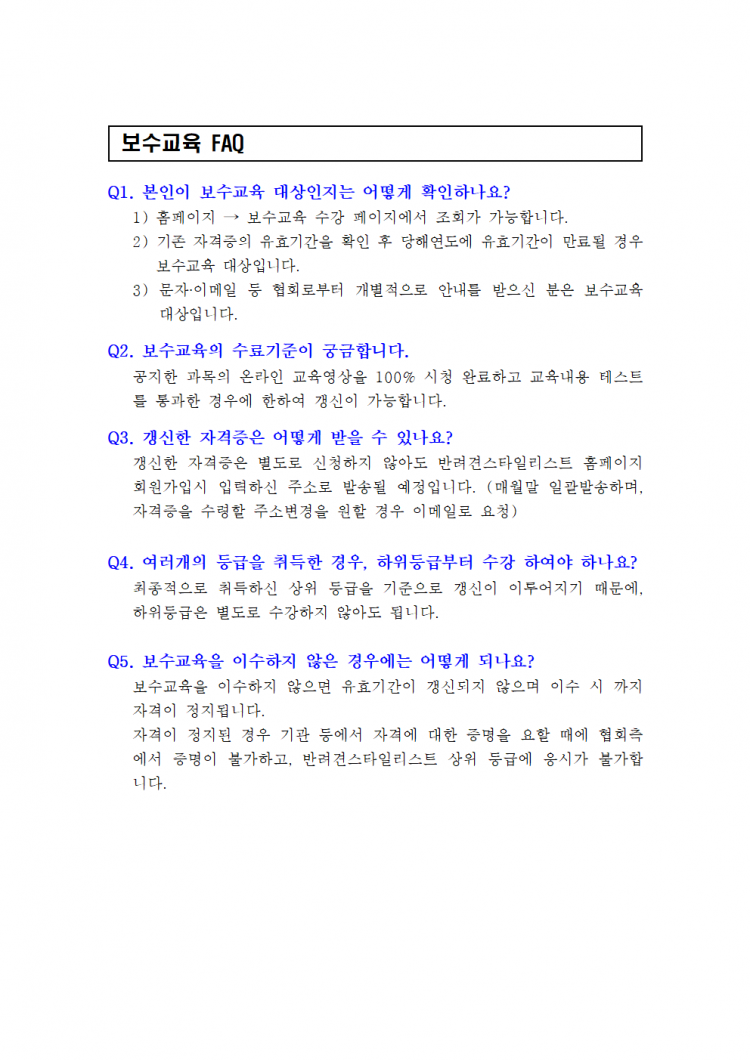 보수교육 안내 및 FAQ