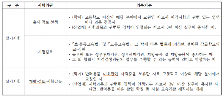 반려견스타일리스트 관리운영규정 제41조(시험위원의 위촉기준 등)