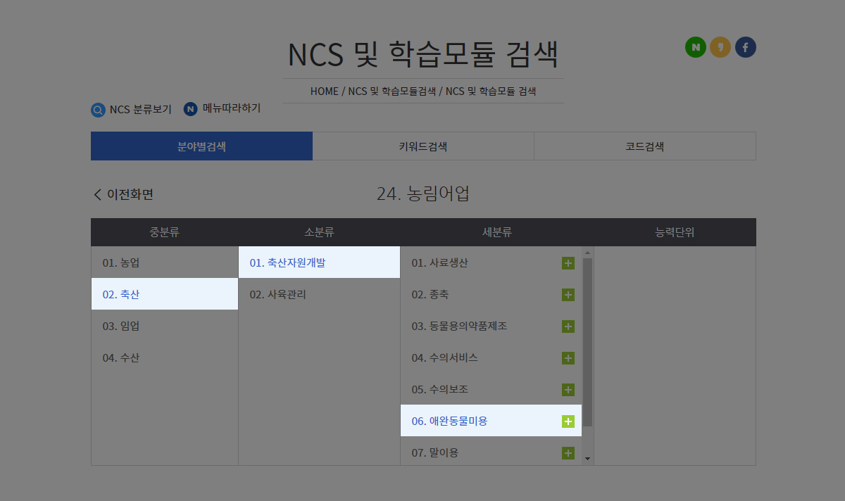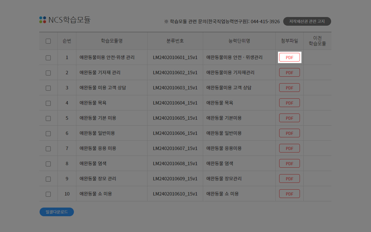 애완동물미용 NCS 학습모듈 검색 및 다운로드 방법